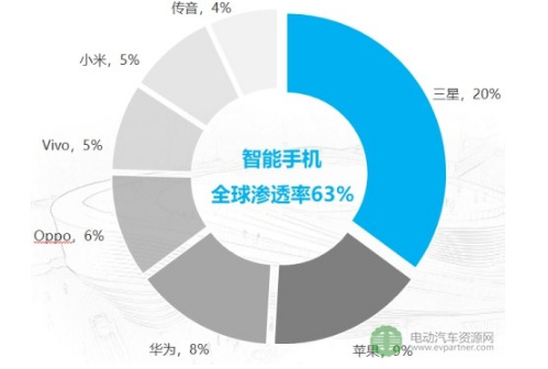 2007年,諾基亞等功能機在全球手機出貨量市場份額中占比高達83%;而2017年,昔日功能機品牌已僅存三星(智能化升級);全球市場中,智能機已取代功能機主導地位,滲透率十年內由3%躍升至63%。