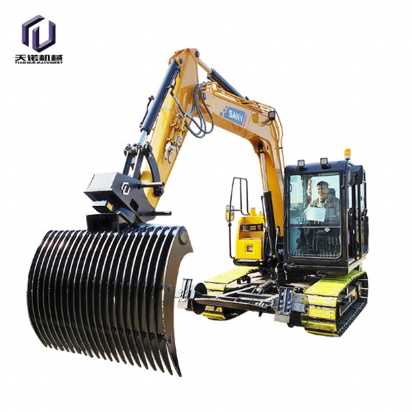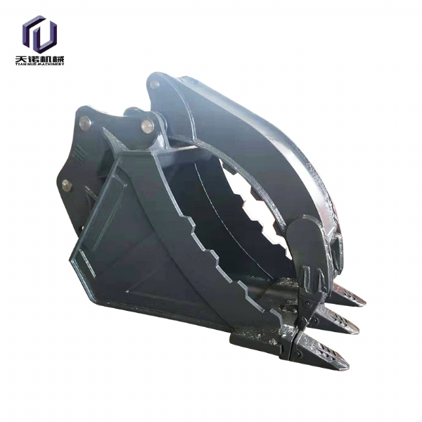 鏟斗夾:又名拇指夾,抓取重量約2.5噸,在小型木材、棒狀物、條狀物的抓取上面有優(yōu)勢(shì),適用于市政建設(shè)、二次拆除、礦山等大多數(shù)作業(yè)環(huán)境要求,適合8-50噸挖掘機(jī)使用;